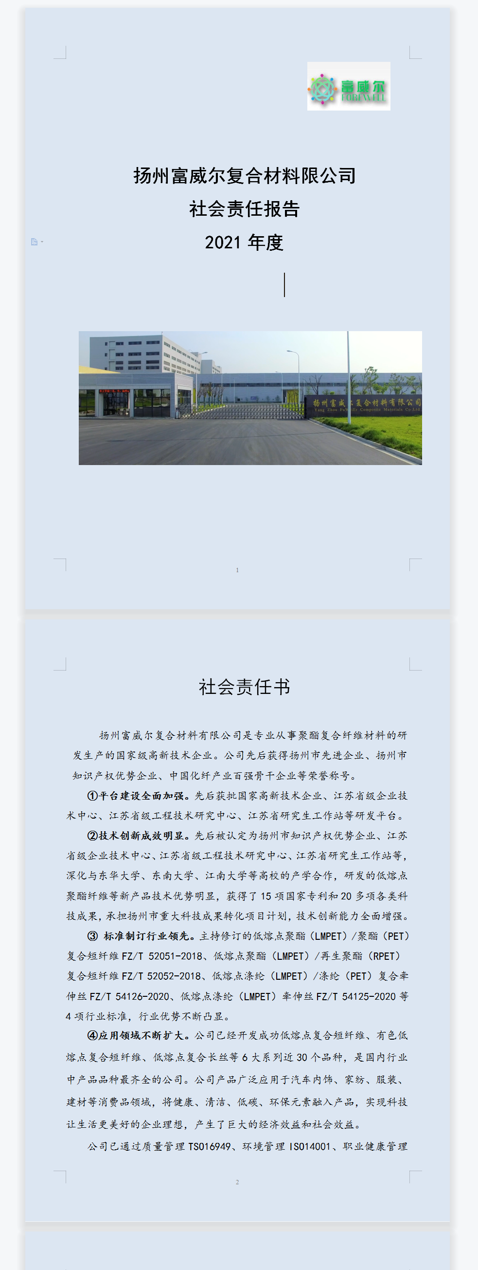 2、公司總部揚州天富龍集團于2018年先期注入50萬資金通過在儀征市紅十字會成立的“天富龍博愛廣善基金”,2021年再次注入50萬元,用于幫扶困難職工和社會弱勢群體。